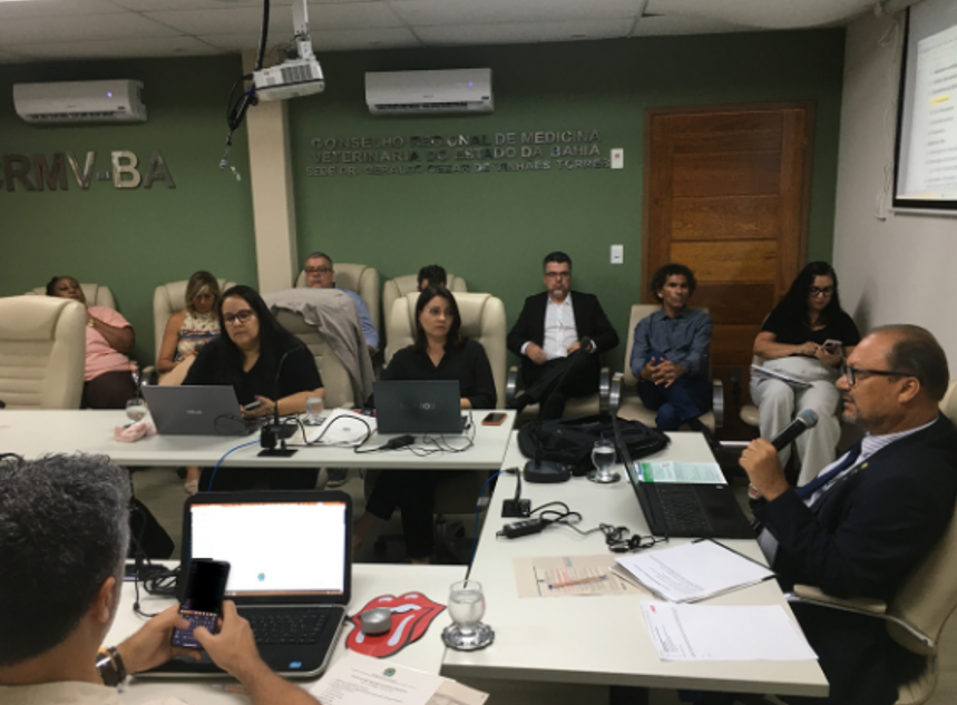 Convocados pelo Conselho Federal de Medicina Veterinária (CFMV), os Conselhos Regionais de Medicina Veterinária do Estado da Bahia (CRMV/BA) e do Estado de Roraima (CRMV/RR) participaram do Encontro Nacional Integrar Diretorias, de 19 a 21, em Brasília.